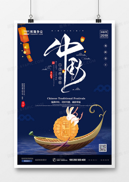 中秋节之手绘卡通女孩坐着月亮上钓月饼