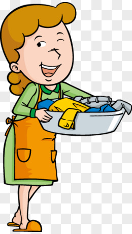 卡通手绘妈妈在家洗衣服插画素材