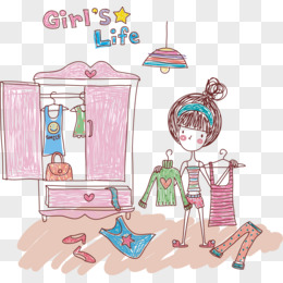 手绘插画风小女孩换衣服免抠元素