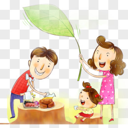 卡通一大家人穿着红色新衣服逛灯会免抠元素