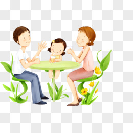 手绘卡通一家人团圆吃年夜饭免抠元素