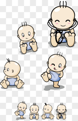 手绘卡通三个小婴儿宝宝排排坐免抠元素