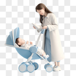 3D卡通穿着红色旗袍提着手提袋的孕妇免抠元素