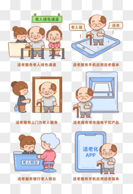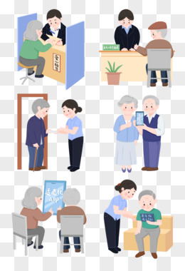一组手绘卡通适老服务场景素材