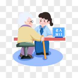 一组卡通帮助老年人助老服务套图之老人窗口服务元素