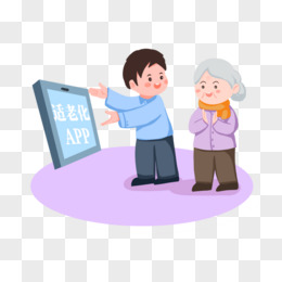 一组卡通帮助老年人助老服务套图之教老人用适老化app元素