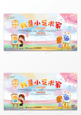 清新卡通水彩小艺术家招生展板