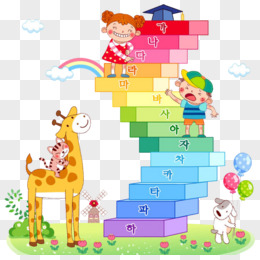 手绘卡通彩虹可爱的男孩女孩免抠元素