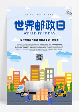 卡通简约世界邮政日海报