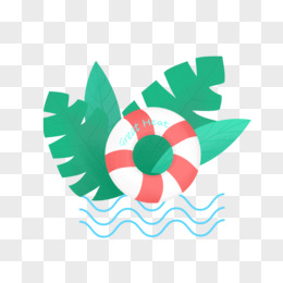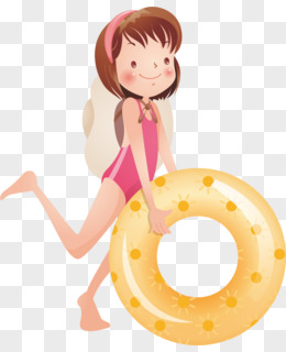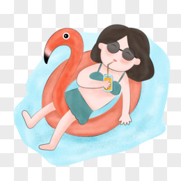 夏天之手绘卡通女孩躺在救生圈上喝饮料