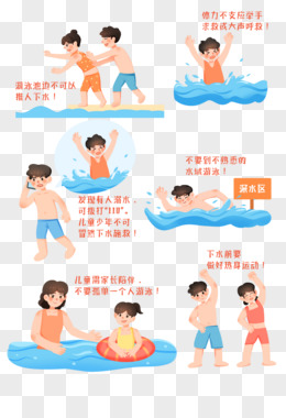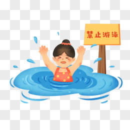 儿童防溺水标志警告防溺水宣传卡通手绘儿童游泳