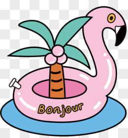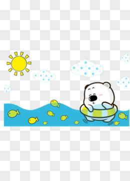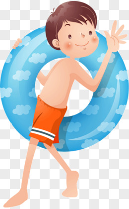 卡通手绘男孩惬意的躺在游泳圈上免抠素材