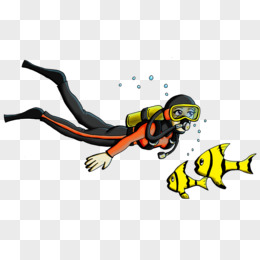 手绘卡通可爱女孩海底潜水场景免抠素材