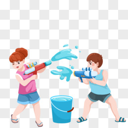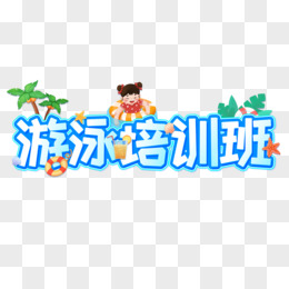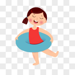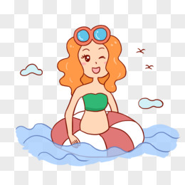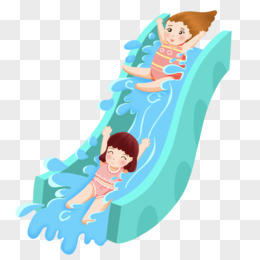 卡通手绘小女孩玩水上乐园滑滑梯免抠元素