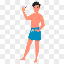 手绘卡通小清新创意立夏夏天男士四角游泳裤元素免扣