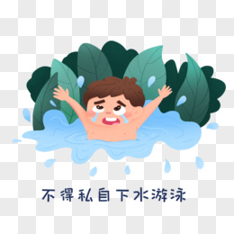 一组卡通手绘儿童禁止在没有大人陪同下游泳素材