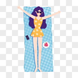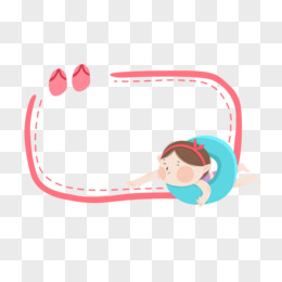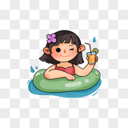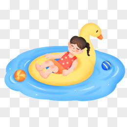 卡通爱游泳的小朋友躺在火烈鸟泳圈上