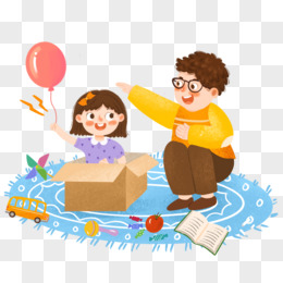 手绘卡通爸爸带娃玩游戏插画免抠元素
