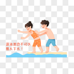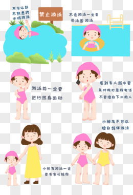 一组手绘卡通防溺水合集禁止推人下水免抠素材