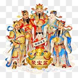 卡通手绘五路财神免抠元素