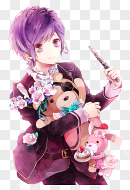 卡通原画立绘紫色头发男子