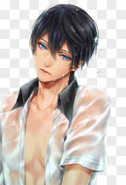 卡通原画立绘黑色头发男子