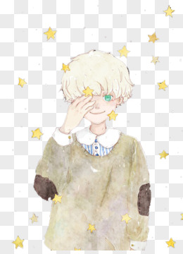 卡通原画立绘男孩五角星漂浮