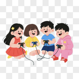 卡通小男孩拿着平板电脑玩游戏免抠元素