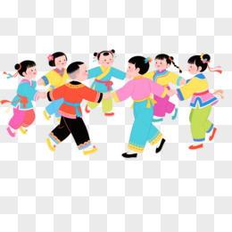 卡通手绘少数民族小朋友转圈玩游戏免抠元素