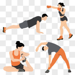 卡通手绘女孩跟着视频一起做瑜伽免抠素材