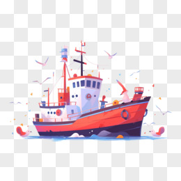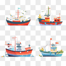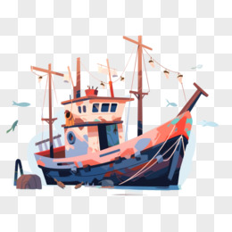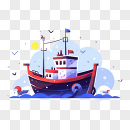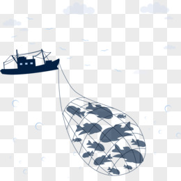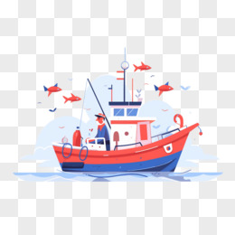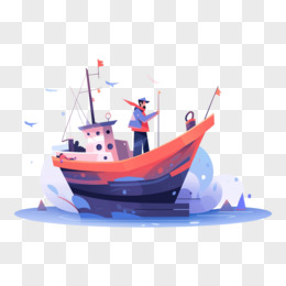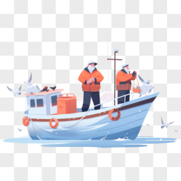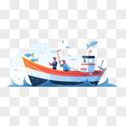 手绘卡通在海上乘床捕鱼的渔民免抠元素
