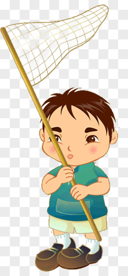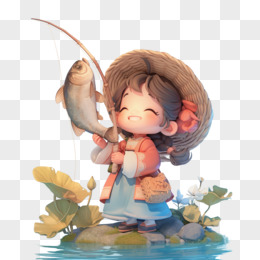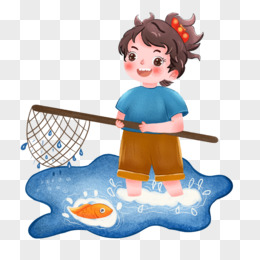 卡通手绘单人小朋友下水捕鱼免抠元素