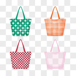 一组卡通波点格纹购物袋元素
