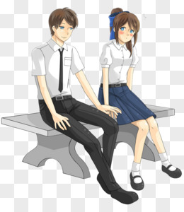 手绘卡通动漫人物形象之黄发制服女孩素材