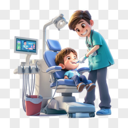卡通3D男医生治疗孩子的牙齿免扣元素