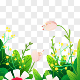 卡通手绘春日自然花丛免抠元素