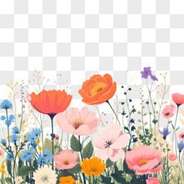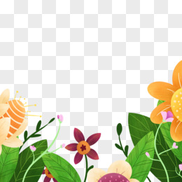 手绘卡通花丛底边免抠元素