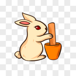 手绘卡通可爱玉兔捣药元素