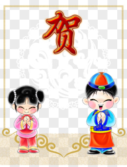手绘过年主题之拿元宝和祝福语的鼠宝宝