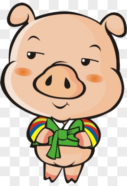卡通小猪和小兔子一起卷毛线场景免抠元素