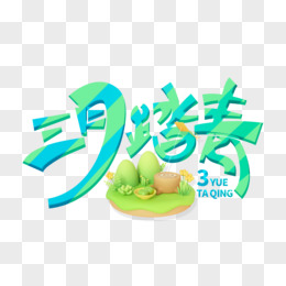 三月踏青卡通彩色艺术字