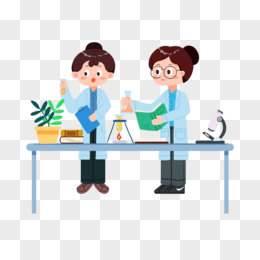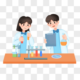 手绘卡通实验人员做实验场景素材