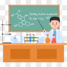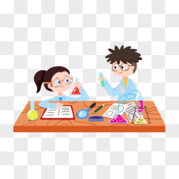 手绘卡通学生上化学课免抠素材