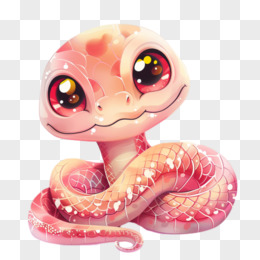 3D卡通新年装饰元素白色蛇和粉色桃花免抠元素