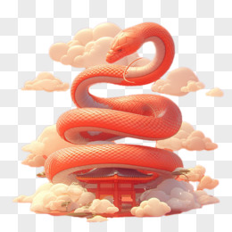 3D卡通新年装饰元素红色蛇和祥云免抠元素