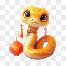 拎着红灯笼的可爱金色蛇年卡通形象免抠元素