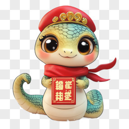 围着红色围巾的可爱金色蛇年卡通形象免抠元素