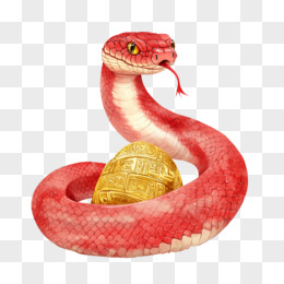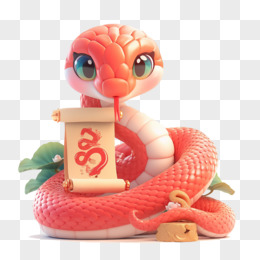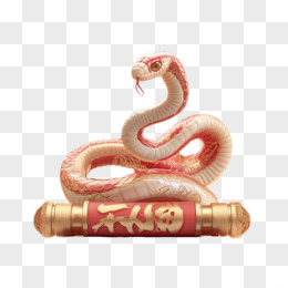 3D风新年红色蛇与红色古风卷轴免抠元素