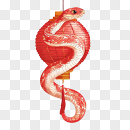 3D立体新年白色蛇和灯笼祥云免抠元素