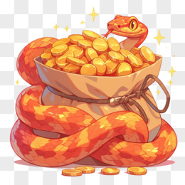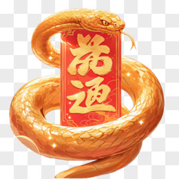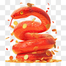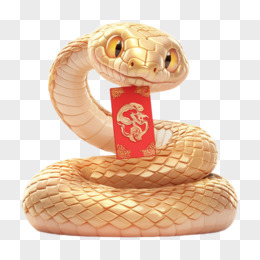 3D立体新年白色蛇和红色福袋金币免抠元素